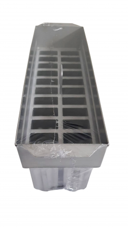 Com friso longitudinal e um aumento na espessura da borda, juntas as formas criam um espaço vazio que diminui a área de contato entre elas e a possibilidade de respingo, para o lado interno, durante a fabricação dos picolés.